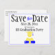 Skicka den här minimalistiska gulten och skriv "Spara datumet" för din skola studenten på det här mallens vykortsmeddelande. Anpassa texten i mallens fält för fram- och tillbaka eller klicka på anpassa för att välja det teckensnitt stil, storleka och färg som du vill använda.