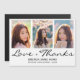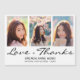 Skicka ett anpassningsbar-fototack till din familj och dina vänner för studenten. Den här designmallen innehåller tre av dina foton som ramats in i vitt. Under det svarta manuskriptet står det "Kärlek + Tack" med ditt namn, din skola och året för att du ska anpassa dig. Designad av konstnären ©Susan Coffey.