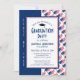 Patriotisk studenten-inbjudan som visar Förenta nationernas STATER kontur karta. Blåblå bakgrund med STUDENTEN i subtilt mönster. Platshållartext är anpassade, så lägg bara till ditt namn och information. Del av uppsamlingen i Berean Design i STUDENTEN.