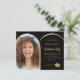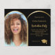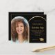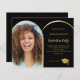 Lägg till ett eget lodrät storlekt foto av student. Ett faux guld-båge formade fotot ram. En klassisk svart bakgrund färg. Anpassa och lägg till information om namn och party. 1 lakan = 1 inbjudan tryckt kant till kant.