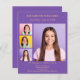 Skapa din egen unika fotokollage. Använda fyra, fyra av dina favoritfoton. Anpassa och lägg till information om namn och party. Lila bakgrund. 1 lakan = 1 inbjudan tryckt kant till kant.