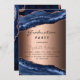 En modern, snyggt och glamorös inbjudan till studentfest. Blått och ro guld agat, marmor stenbakgrund. Namn är skrivet med ett modernt handskript i stil. Anpassa och lägg till information om party.