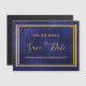 Spara datummagnetkortet för en Studentfest party för en kille, en man, en man. En marin blå bakgrund som dekoreras med guldkonetti och faux guld ram. Den blå färg är ojämn. Anpassa och lägg till ett datum och namn. Golden färgad brev. Texten: Spara datumet skrivs med ett stort trendig-handskript i stil.