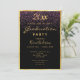 Ett feminin- och chic-inbjudningskort för en studentfest på 20 x. Glamorös med elegant och modern svart bakgrund och lila och rosa konetti regn. Med faux guld ram. Mall för information om namn och party. Texten Studenten och namn är skrivna med ett modernt, hanterat stil-skript. Golden brev. Baksida: Svart bakgrund med regn från rosa och lila.