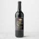 Unik märkning av svart och guld studentfest vin flaska med tackmeddelandet och mallen för student namn och år. Typografin dekoreras med grafik i gyllene gult med grafik i grad och diplom.