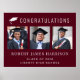 Elegant burgundröd studentfest poster fira student. "GRATTISAR" är i stor vit typografi med en illustration av en studentmössa. Lägg till tre foton av graden och deras namn, klassår och namn i skolan i modern vit typografi. Bakgrunden och texten färg kan redigeras för att matcha färgen i skolan genom att du redigerar i designen verktyg.