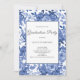 Inbjudan till studentfest av blå blommigt. Söt blommönster fram och tillbaka. Lätt att ändra informationen.