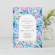 Inbjudan till studentfesten blommigt Painting har en färgstark bakgrund för blommigten abstrakt med ram i vitt. På baksidan visas motsvarande blommigt (som kan tas bort om du vill).