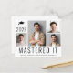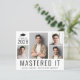 Budgetvänlig magisterexamen i studenten och partiinbjudan med ett 4 bild fotokollage, "Mastered it", skrivet över grund i stort huvudstad brev och hans eller hennes klassår, namn och college eller universiteten i enkel typografi. På motsatt sida lägger du till information om studentfesten.