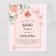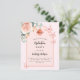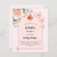 En rosa med ro guld och persikobåge färgad. Dekorerad med en blommigt för guld och rosa, blomma från ro, vattenfärgad eukalyptus greenery och butterflies i grönt. Anpassa och lägg till information om namn och party. Bakåt: ro guld, färg. 1 lakan = 1 inbjudan tryckt kant till kant.