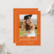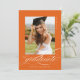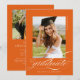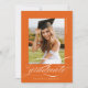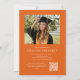 Orange Elegant Script QR-kodinbjudan för foto-Studentfest innehåller ett vackert skript med elegant som täcker fotot. Din information om party och ditt foto finns på baksidan, tillsammans med en QR-kod för din student önskelista.