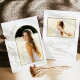 Gratulera till studenten i stil med vår enkla Studentfest för skript Vit och Guld! Med fantastiska accenter från guld på vit bakgrund och plats för två omhuldade foton är den här inbjudan till elegant säkert ett bestående intryck på dina gäster och gör din studentfest oförglömlig.