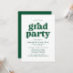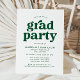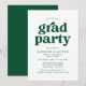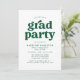 inbjudningskort för studentfest av snyggt med "grad party" som visas i fet grönt typografi med de uppgifter om student namn och party som visas nedan. De enkla inbjudningskorten för studentfest är perfekt för både högskolan och högskolan i studenter.
