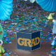 KLASSIFICERING i fetstil med guld, radbrytning runt framsidan av dessa fyrkantiga 2-tums fyrkantiga studentfester med ditt namn och tack för ett meddelande längst upp. Fyll med behandlingar som ett tack till gästerna vid din studentfest. MATCHING-objekt och mer färg i vår samling.