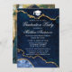 Modern Elegant Watercolor Blue och Guld Marble Agate Geode Studentfest-inbjudan - Foto Back