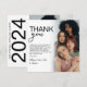Våra dubbelsidiga 2-foto grupp-examensfirande tack-kort har en vit bakgrund, 2 foton och en stilren tack-mall.