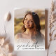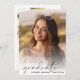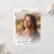 Inbjudan till studentfest av elegant med gradens foto överlagrad med "student" i ett modernt skript och deras namn och klassår i enkel typografi. På motsatt sida lägger du till ytterligare ett foto och graderingen party.