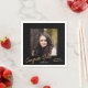 Den här studentfestens pappra napkin har ett fyrkantigt foto och guld-skripttext på en svart bakgrund. Skripttexten lyder: Gratulerar Grad. Anpassa med ditt favoritfotot om du vill ha en roligt som visar studentfesten firande.