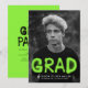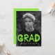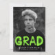 Urban, trendig fotostudentfest-inbjudningskort med student med "Grad" i ett kalkgrönt, sprayfärgtypografi stil. Anpassa fronten genom att lägga till student namn, namn, studenten och skolår. Det moderna studenten-meddelandet återgår till att visa dina studentfester i svart mot en kalkgrön bakgrund eller färg efter ditt val.