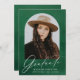 Inbjudningar till studentfesten elegant som innehåller student-fotot inuti en båge ram med grönt vattenfärgsbakgrund. "Student" visas i ett vitt, modernt kalligrafiskript med student namn, skolan och graderingsåret som visas nedan. Baksidan av fotoinbjudan innehåller information om din studentfest med en vattenfärgsbakgrund för grönten.