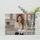 Modern inbjudan till studentfest med vågräts foto på framsidan med "student" som visas i ett vitt handskrivet skriptöverlägg. Anpassa studentfesten inbjudan till fotot med namn, namn och studenten i student. Den enkla inbjudan till studentfest går tillbaka till visning av dina party-uppgifter med vit text med en solid svart bakgrund. Fotot studentfest inbjudan är perfekt för både high school och College student!