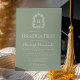 Den här klassiska inbjudan till studentfest med elegant har en vit monogramssymbol i ett öppet serif-teckensnitt som omges av en acanthus-vapensköld på en sidbakgrund med grönt. Anpassa texten till uppgifterna om student namn och party. Kortets baksida är en solid sage grönt. Perfekt för en högskola, högskola eller universiteten student.