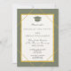 Klassen för formell grönt för stil-elegant och inbjudan till vit studentfest med guld-geometrisk ram och gradhatt.