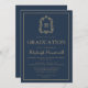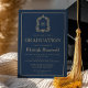 Studentfest för marin blå Guld-monogram Vapensköld Inbjudningar