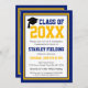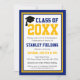 Denna inbjudan till foto-Studentfest för marinen och Guld är ett underbart sätt att fira högskolan eller högskolan student. Anpassa detta med namn, skola, år, party och student bild på baksidan. I inbjudan förekommer fet typografi i färg i flottan och guld med flotta och guld gräns.