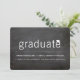 Ett modernt, minimalistiskt 2-i-1-studenten-promemorierings- och graderbjudandekort med enkel fet typografi med ett pantbord/studentmössa på ett svart lagrar som texturerats på ett svart kalkkort och som kan tas bort och personlig med valfri platt anpassningsbar färg. Fotot och party inbjudan finns på baksidan av kortet. Du kan enkelt lägga till mer text/info/information och/eller foton till den här produkten. All inslag som är utformad är flyttbar och redigerbar. Bakgrunden under lagrar kan ändras till valfritt färg. Designade/ursprungliga teckningar efter tjock*fa*tin*i. Enkel att anpassa med ditt eget textmeddelande, namn, foto eller bild. Fler teckensnitt, fotofilter och redigeringsfunktioner finns på stilarna Redigera design. — https://www.zazzle.com/collections/graduation_party_supplies-119447822100562139 — https://www.zazzle.com/collections/personalized_graduation_accessories_custom_gifts-119420215306879748 — https://www.zazzle.com/collections/graduation_announcement_cards-119240297798176351 — www.zazzle.com/collections/graduation_party_invitations-119988321070623801 — www.zazzle.com/collections/graduation_thank_you_cards-119015369615228414 — www.zazzle.com/fat_fa_tin www.zazzle.com/color_therapy www.zazzle.com/fatfatin_blue_knot www.zazzle.com/fatfatin_red_knot www.zazzle.com/fatfatin_mini_me www.zazzle.com/fatfatin_box www.zazzle.com/fatfatin_design www.zazzle.com/fatfatin_ink