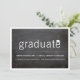 Ett modernt, minimalistiskt 2-i-1-studenten-promemorierings- och graderbjudandekort med enkel fet typografi med ett pantbord/studentmössa på ett svart lagrar som texturerats på ett svart kalkkort och som kan tas bort och personlig med valfri platt anpassningsbar färg. Fotot och party inbjudan finns på baksidan av kortet. All inslag som är utformad är flyttbar och redigerbar. Fler redigeringsalternativ på anpassningssidan. Du kan ändra bakgrunden färg till valfritt färg. Designad av tjock*fa*tin. Enkel att anpassa med egen text, bild eller bild. Kontakta tjock*fa*tin direkt om du vill ha anpassningsbar. Avgifter för anpassningsbar gäller. — https://www.zazzle.com/collections/graduation_party_supplies-119447822100562139 — https://www.zazzle.com/collections/graduation_announcement_cards-119240297798176351 — www.zazzle.com/collections/graduation_party_invitations-119988321070623801 — www.zazzle.com/collections/graduation_thank_you_cards-119015369615228414 — www.zazzle.com/fat_fa_tin www.zazzle.com/color_therapy www.zazzle.com/fatfatin_blue_knot www.zazzle.com/fatfatin_red_knot www.zazzle.com/fatfatin_mini_me www.zazzle.com/fatfatin_box www.zazzle.com/fatfatin_design