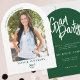 Familjen Inbjudan och vänner i stil för att fira student:s viktiga milstolpe med denna inbjudan till Studentfest för Modern Script Arch Photo Grönt. Den här designen har en trendig-design, ett modernt handskrivet skript i chicen och ett anpassningsbar-foto och blandar sofistikering med ett personligt tryck. Perfekt för högskoleexamen eller högskoleexamen i firande, denna inbjudan anger tonen för en oförglömlig händelse med nära och kära. Anpassa med student klassår, namn och party i en grönt för jägare av mörkar i elegant. Ett val av snyggt för studentfester, öppna firande eller virtuella sammankomster.