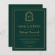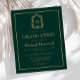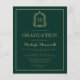 Den här klassiska inbjudan till studentfest med elegant har en guld-färgad-monogramsstart i ett öppet serif-teckensnitt som omges av en vapensköld med konturteckning på mörk grönt bakgrund. Anpassa texten till uppgifterna om student namn och party. Kortets baksida är en solid grönt. Perfekt för en högskola, högskola eller universiteten student.