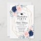 Studentfest för Rosa och marin blå Blommigt Inbjudningar