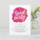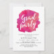 Vänner och familj i inbjudan till din grad party med en inbjudan till studentfest om rosa vattenfärg. Utformningen har rosa vattenfärg, snyggt, platshållare för texten och rosa vattenfärg rand mönster på baksidan.