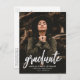 Inbjudan gäster som firar graderingen med trendigets vykort för studentfest av foto. Studentfest inbjudningskort visningar lodrät student med "student" med vit skript. Anpassa inbjudan genom att lägga till student namn, namn och studenten. vykortet återgår till visning av returadress- och studentfest-information.