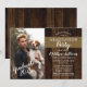 Tåligt träträ av mörk och burlap-studentfest är en fotoinbjudan av Helgdag Hearts Designs med mallfotot kredit till Talen de St. Croix of Unsplash.