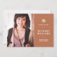 Studenten-meddelandet i contemporary har en modern utformning med en terracotta-orange och vit färg-palett. Lägg till ditt favoritfoto av den nya graden och redigera textmallen med student namn, studenten och skolan. En guld studenten-hatt sitter ovanför typografin. Studentfesten kan läggas till på kortets baksida.