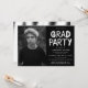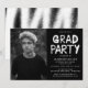 Modern studentfest inbjudan med student-fotot med "Grad" i ett vitt, sprejfärgat stil mot en svart bakgrund eller färg efter eget val. Anpassa inbjudan genom att lägga till uppgifter om student namn, namn, studenten och studentfest. Inbjudan återgår till visningen med en svartvit sprejfärg.