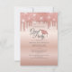 Inbjudan till studentfest Grad 2022 Ro Guld Glitter. Du kan enkelt anpassa detta genom att klicka på knappen "Anpassa". Med en modern, glatt glitter-droppdesign och student-sockel med skript och populär typografi.