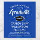 Lägg till en personlig till dekorationer för högskoleutbildning eller studentfest i högskolan med elegantens blå och vita etiketter för royalet vin flaska. Utformningen har en blå bakgrund, en svart pantartonshölje, modern typografi för snyggt, handskrivet stil-manusgrafi och ett anpassade som läser "Grattisar till Student". I texten i grund ingår klassår, namn och valfritt linjer för examen, dryckestyp eller annan information. All text är enkel att anpassa. Dessa märkningar gör att en studentfest av snyggt dricker och en elegant till student speciella firande. Skål!