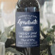 Lägg till en personlig till dekorationer för högskoleutbildning eller studentfest i högskolan med elegantens blå, vita och silver flaska. Utformningen har en blå bakgrund med borstat botten, en tunn hylsa av rostfritt stål, modern snyggt, handskriven kalligrafi av stil-skript och ett anpassade som läser "Grattisar till Student". I texten i grund ingår klassår, namn och valfritt linjer för examen, dryckestyp eller annan information. All text är enkel att anpassa. Observera att silver är tryckt på färg, inte metallfolie. Dessa märkningar gör att en studentfest av snyggt dricker och en elegant till student speciella firande. Skål!