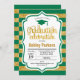 Inbjudan till studentfest med Grönt och Guld Rand Elegant modern enkel design med faux glitter guld och skriptteckensnitt. Perfekt för en elegant i party.