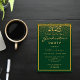 En modern och snyggt inbjudan till en studentfest. För både honom och henne. En klassisk gröntens bakgrund och ett gyllene konfettregn. Med faux guld ram. Mall för information om namn och party. Texten Studenten och namn är skrivna med ett modernt, hanterat stil-skript. Golden brev.