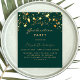 En glamorös inbjudan till 2023 (eller vilket år som helst) studentfest för både honom och henne. En grönt med faux guld-stjärnor. Anpassa och lägg till information om namn och party. Texten Studenten och namn är skrivna med ett modernt handskript i stil. Golden färgad. Bakåt: gröntens bakgrund och guldstjärnorna.
