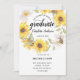 Utexamineringsfest klass 2022 festinbjudan med en frodig blomsterbukett av solrosor och en modern trendig typsnitt.