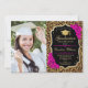 Studentfest med fotot. Det finns en lukrativ utskrift av djur, ett skript, rosa ros, ett smakprov och konetti. Elegant svartvit shock rosa fuchsia-design med faux glitter guld. Perfekt för en elegant firande.