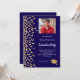En modern inbjudan till Studentfest av elegant. En mörk blått bakgrund som dekoreras med faux guld konetti. Anpassa och lägg till bild, närmare uppgifter om namn och party. Vit text.