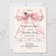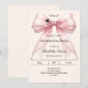 Fira din prestation med denna eleganta rosa båge studentinbjudan. Designen har en stor, sofistikerad båge med band prydd med ömtåliga pärlband och en subtil studentmössa-ikon. Det är det perfekta valet för gymnasie- eller högskolestudenter som söker en feminin och chic underrättelse. Mjuk kräm, elfenbensfärgad bakgrund.
