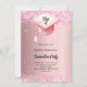 En modern inbjudan till Studentfest av elegant. En övertoningsbakgrund för rosa dekorerad med rosa konetti och en stor studentmössa med tassel. Anpassa och lägg till information om namn och party.
